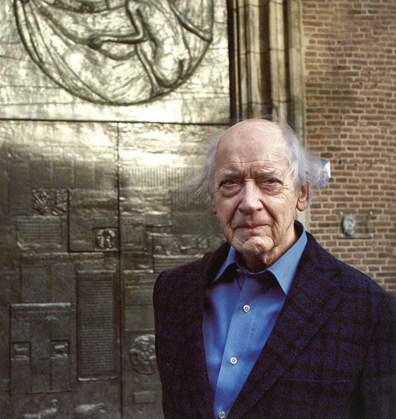 Theo van de Vathorst voor zijn bronzen deuren van de Utrechtse Dom. Foto Piet Gispen.