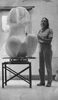 De beeldhouwster Willy Blees naast de gipsen versie van
