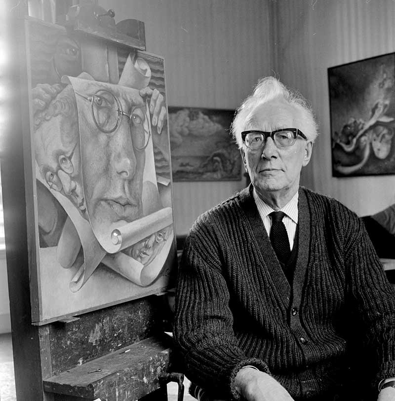 De eeuwige mopperpot ‘Jopie’ Moesman had net als Wichmann een haat-liefde verhouding tot zijn geboortestad. Hij zou er lang blijven wonen en ontwikkelde een eigen magisch-realisme. Hij maakte kennis met deze nieuwe stijl in de galerie van de surrealist Willem Wagenaar. Er lag een Frans tijdschrift vol foto’s van surrealistische kunstwerken.