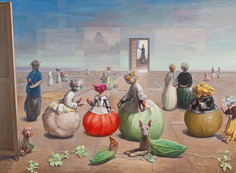 Xiao-Fan Ru, ‘La pomme numero 2’, 2023, olieverf/doek, 194 x 265 cm.